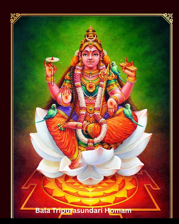Bala Tripurasundari homam will be conducted for spiritual enlightenment & for fulfilling wishes. This powerful homam can remove your past karma and negativities and lead you to a crystal-clear successful growth. This homam will evoke your inner strength ,self will and potential will highlights your heights.